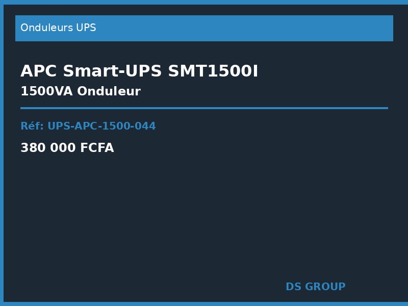 APC Smart-UPS SMT1500I onduleur professionnel pour protection serveurs et equipements reseau. 1500VA 1000W mode online double conversion batterie hot-swap 8 prises IEC logiciel PowerChute inclus. Garantie 3 ans