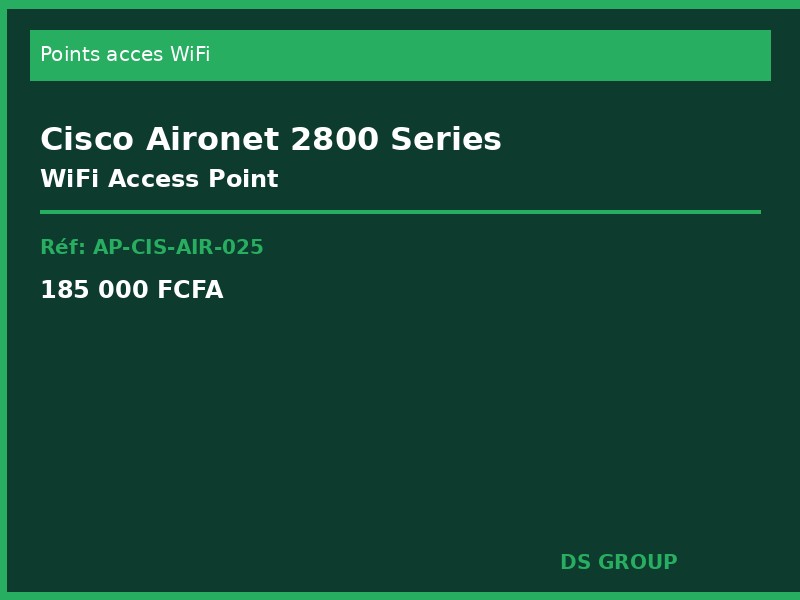 Cisco Aironet 2800 WiFi entreprise pour environnements haute densite. 802.11ac Wave 2 MU-MIMO 4×4 Cisco CleanAir gestion centralisee Cisco WLC ou autonome. PoE 802.3at Cisco DNA Center compatible
