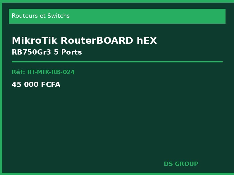 MikroTik RB750Gr3 hEX routeur compact 5 ports Gigabit sous RouterOS. Processeur 880MHz dual-core 256Mo RAM 16Mo Flash port USB firewall avance VPN IPsec L2TP PPTP QoS VLAN. Rapport qualite prix imbattable